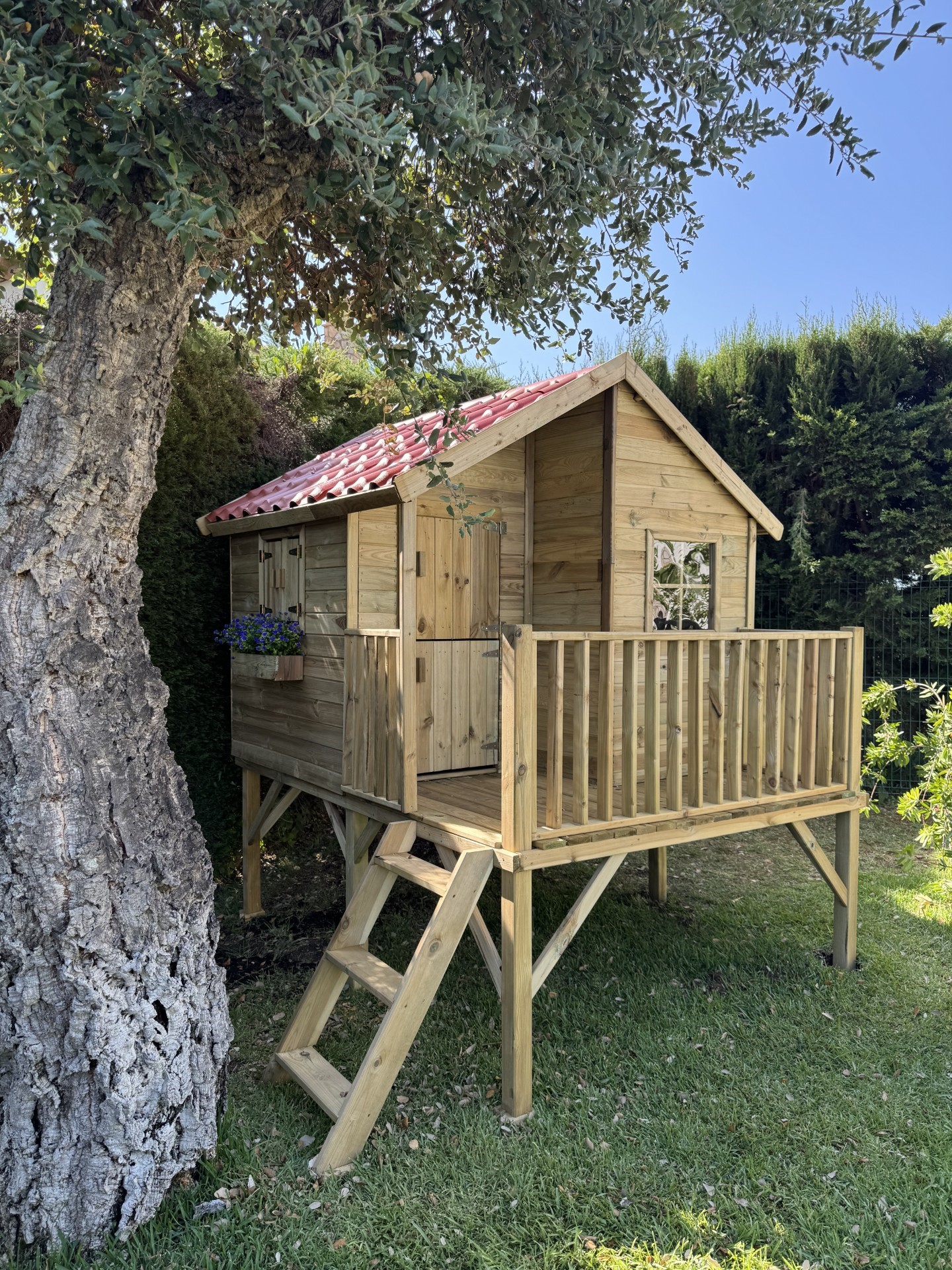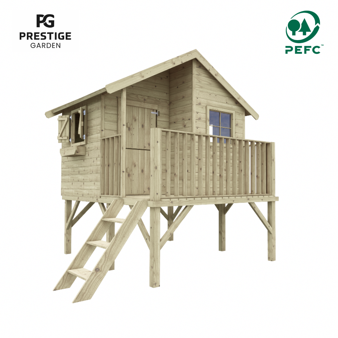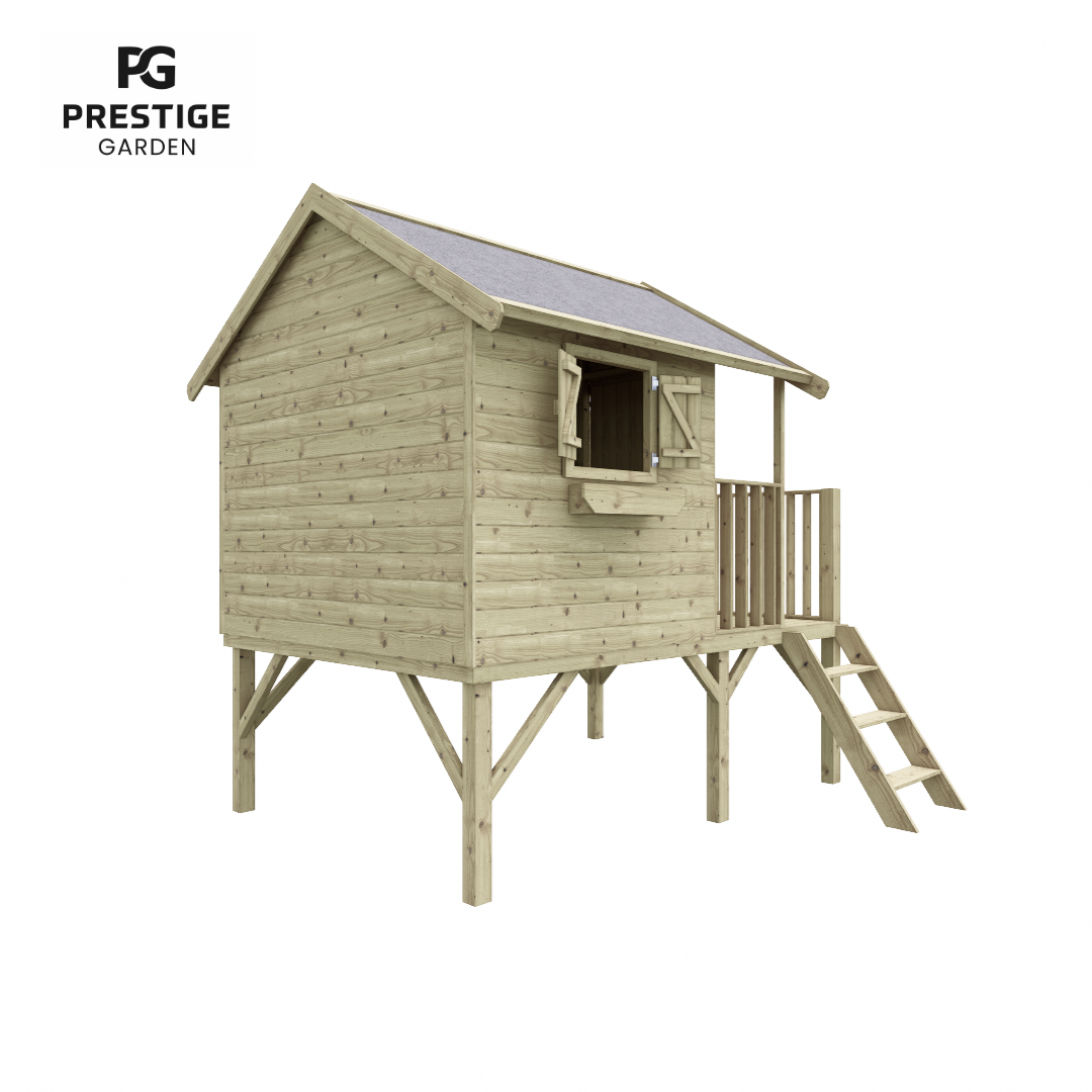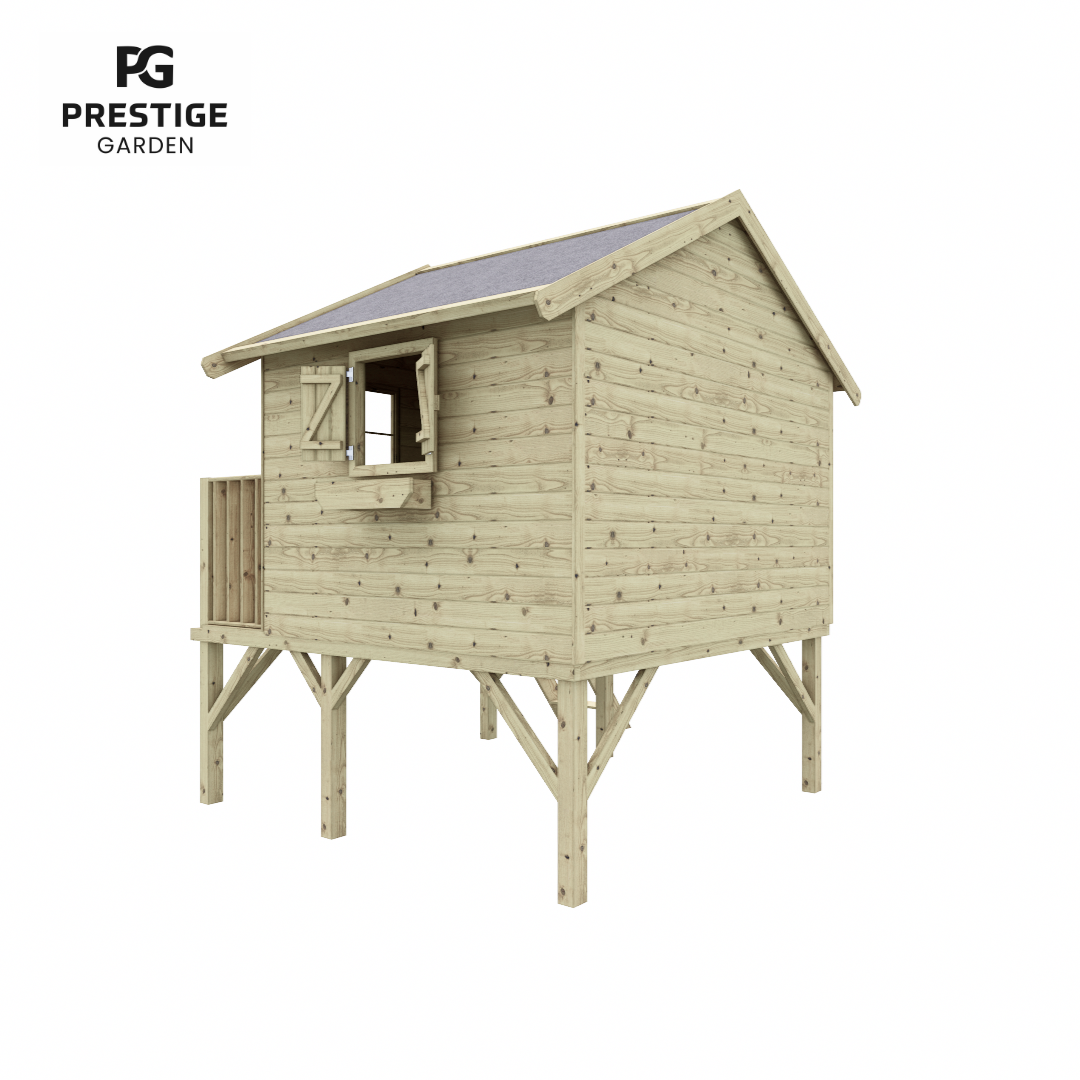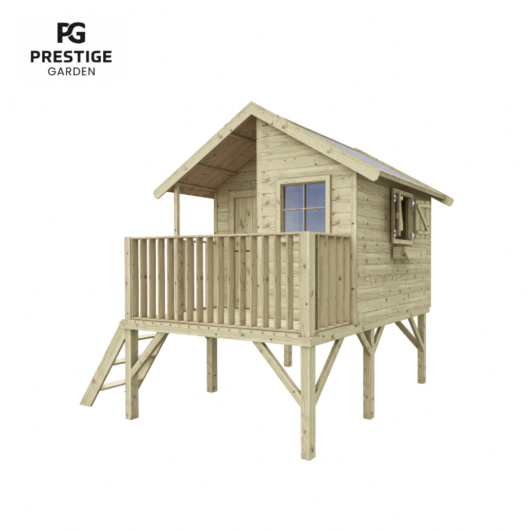 Heures de plaisir garanties dans la maisonnette en bois de Bruxelles. La maisonnette de jeu a un charmant toit à pignon avec des pièces de bordure extra-larges. Cela crée un aspect naturel, de sorte que la maisonnette se transforme presque en une petite maison. Un espace supplémentaire a été laissé aux fenêtres et à la porte, de sorte que les doigts ne peuvent pas se coincer pendant le jeu. La maisonnette est livrée avec des murs pré-assemblés, ce qui facilite grandement son assemblage. Les parois sont imprégnées, ce qui prolonge la durée de vie. Bien sûr, le matériel de montage et un manuel sont inclus. Pour protéger les pieds de la maisonnette, nous vous recommandons de les ancrer dans des points de poteau spéciaux (ceux-ci peuvent être commandés) Avec une hauteur de sol de 90 cm, un environnement de jeu sûr et aventureux est créé. Pour avoir encore plus de plaisir, une balançoire supplémentaire et/ou un toboggan (de 175 cm) peuvent être commandés. Attention : à l’exclusion du feutre de toiture, il peut être facilement commandé.