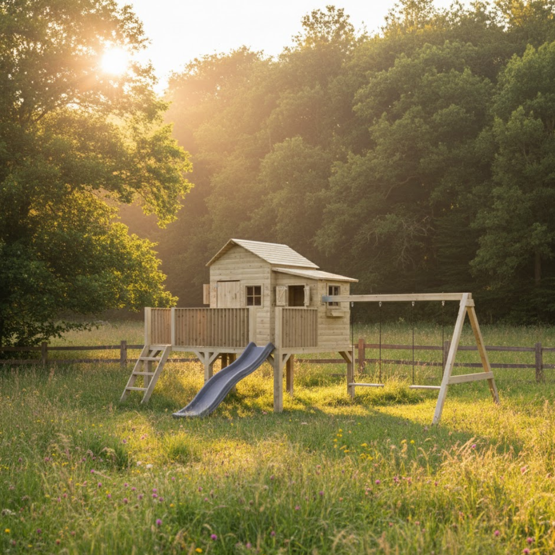 Une apparence confortable, spéciale et chaleureuse sont les mots qui décrivent bien la maisonnette en bois papillon XL. Playhouse butterfly XL offre un monde de plaisir pour les enfants. Avec les murs préassemblés en bois imprégné, la maison est facile à assembler et offre une durabilité contre diverses conditions météorologiques. Il est également livré avec des vis et un manuel. Un espace supplémentaire a été créé au niveau des trappes et de la porte en deux parties, afin que les doigts ne puissent pas se coincer pendant le jeu. Pour rendre cette maisonnette encore plus spéciale, vous pouvez agrandir cette maison avec une balançoire, un toboggan ou d’autres accessoires. Pour mieux protéger les poteaux, nous vous recommandons de commander des points de poteaux (9×9). Attention : le feutre de toiture et les accessoires ne sont pas inclus, mais peuvent être facilement commandés.