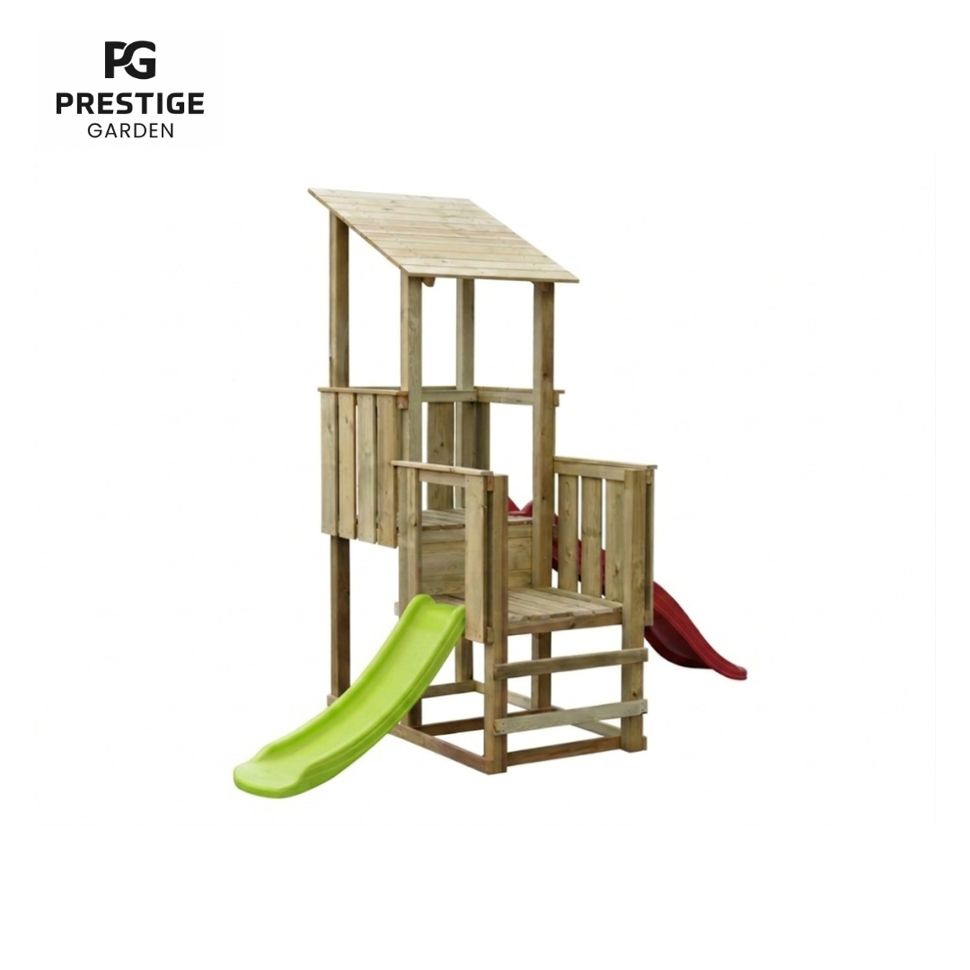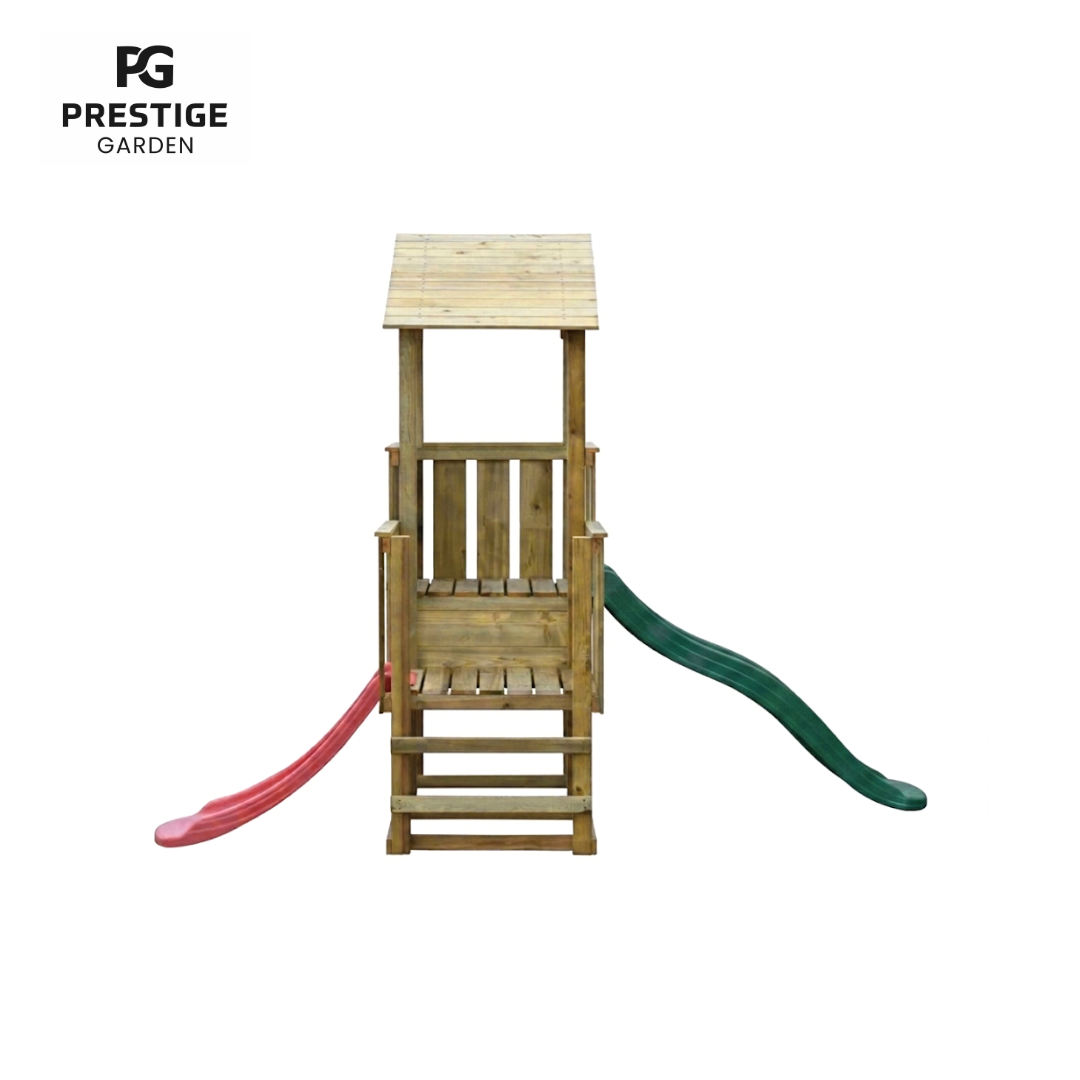 Dans la tour de jeu Pirate, les enfants peuvent s’adonner à leur imagination à leur guise. Ils s’imaginent comme un véritable garde forestier dans une tour de guet, un policier à la recherche des pirates ou laissent les enfants le remplir eux-mêmes. La version standard de ce modèle est sans glissières, mais en option, une glissière peut être fournie avec les deux plates-formes. Ensuite, bien sûr, il y a beaucoup plus de possibilités de jeu. Divers accessoires sont également possibles : comme un volant, des jumelles ou un téléphone. Parce qu’il y a aussi une plate-forme basse, même les plus petits peuvent s’amuser ici. Les hauteurs de plate-forme sont : 60 cm et 90 cm, les toboggans de 90 cm et 175 cm peuvent être commandés.